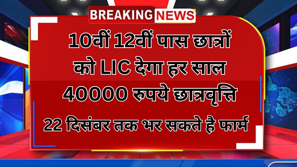 10वीं 12वीं पास छात्रों को LIC देगा हर साल 40000 रुपये छात्रवृत्ति, 22 दिसंबर तक भर सकते है फार्म